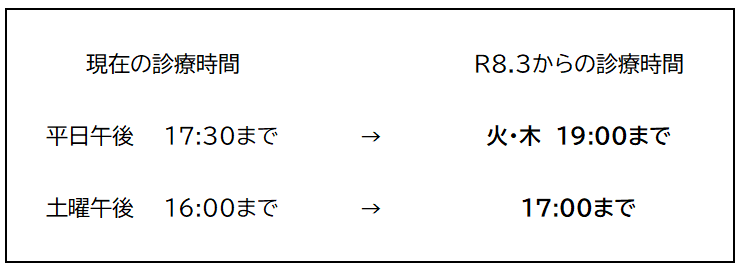 令和8年3月より診療時間を下記のとおり変更いたします。